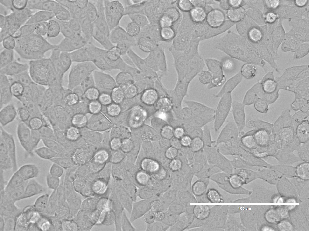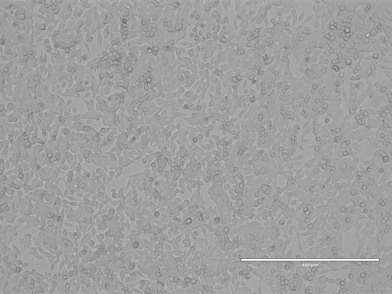51岁男性白人组织中分离得到,由A.Leibovitz等从一个淋巴结建株。细胞系主要由无绒毛的小圆球细胞和双极细胞组成。它仅合成少量癌胚抗原(CEA)且在裸鼠中有高度的致瘤性。