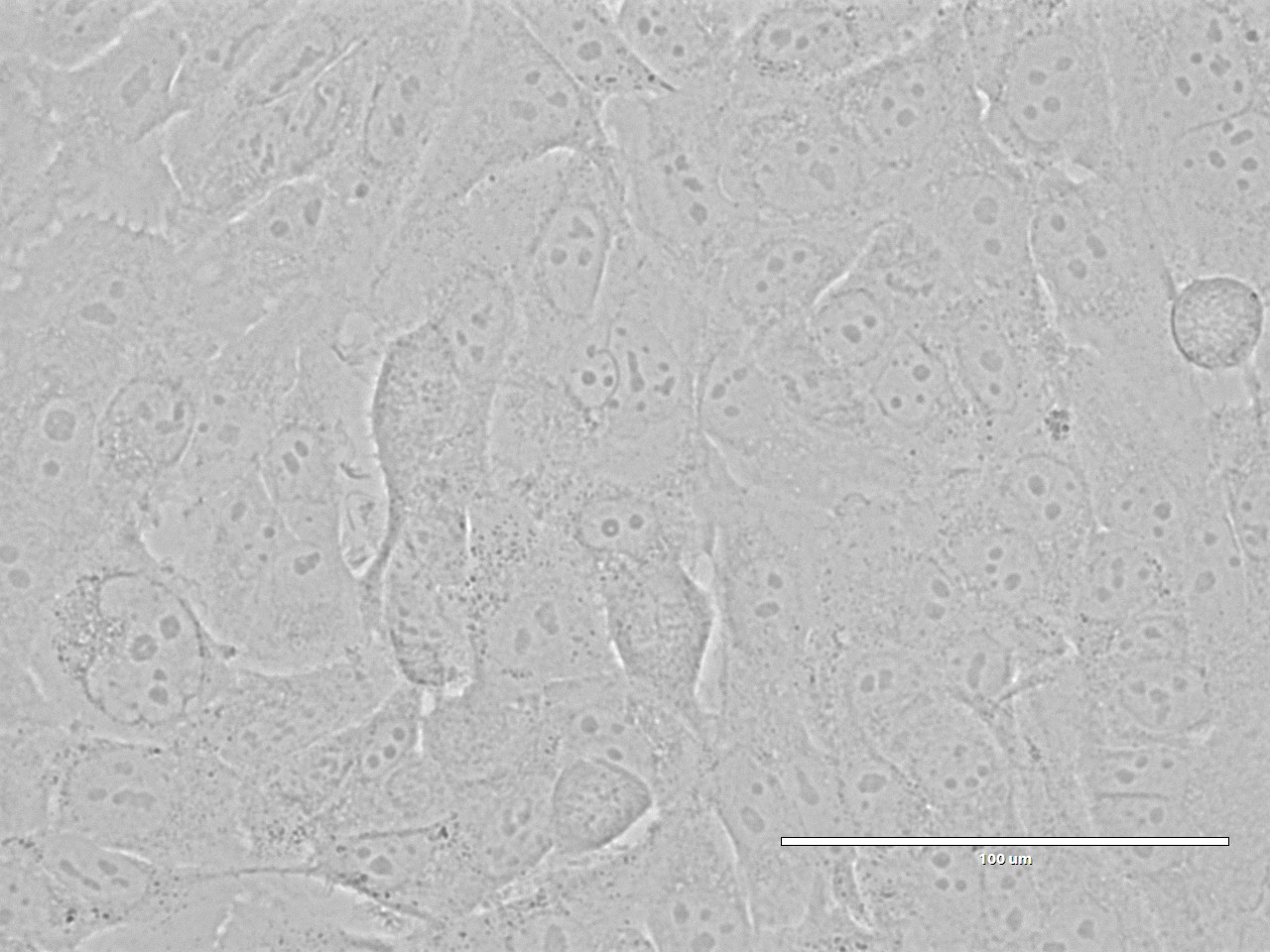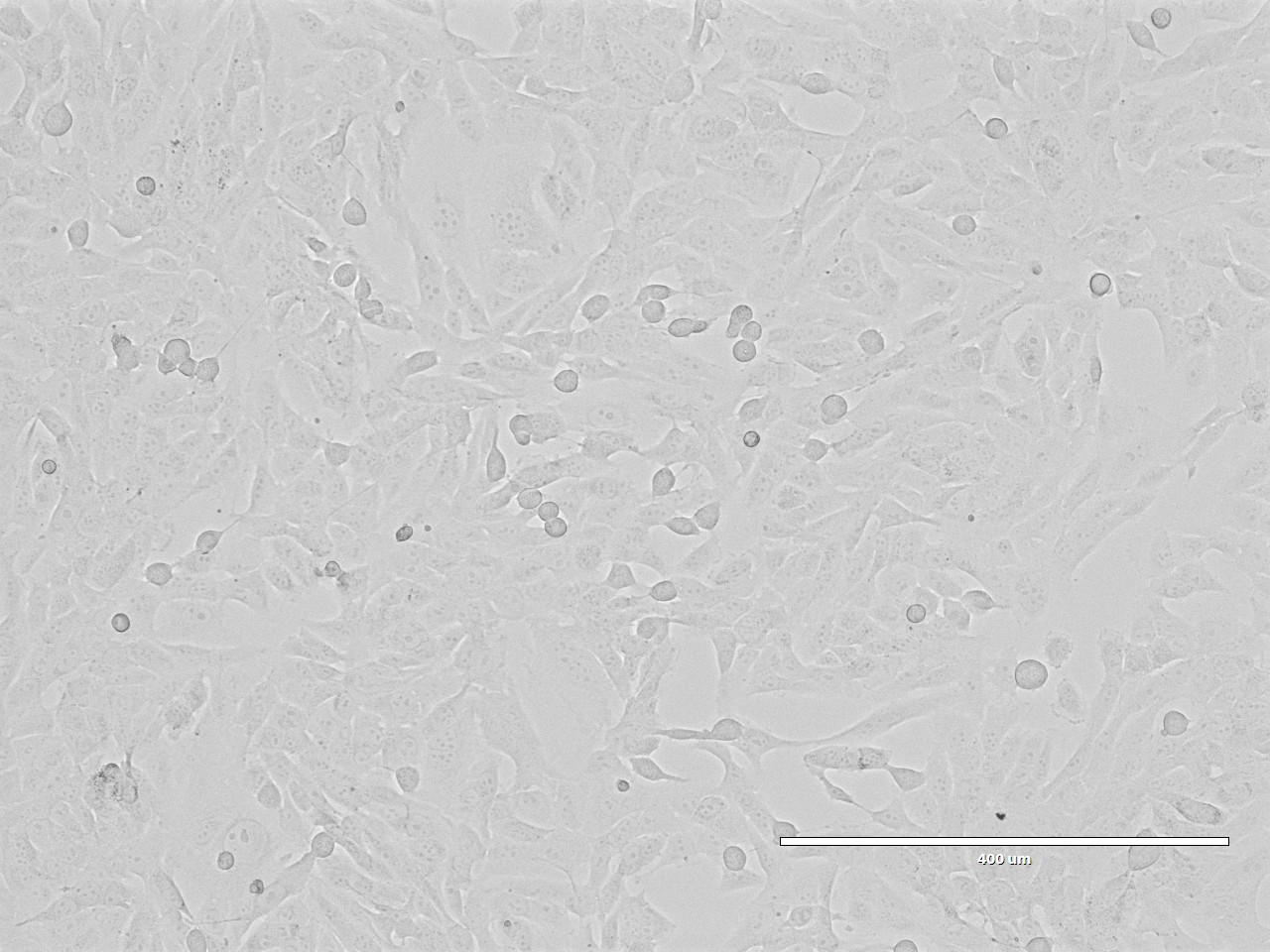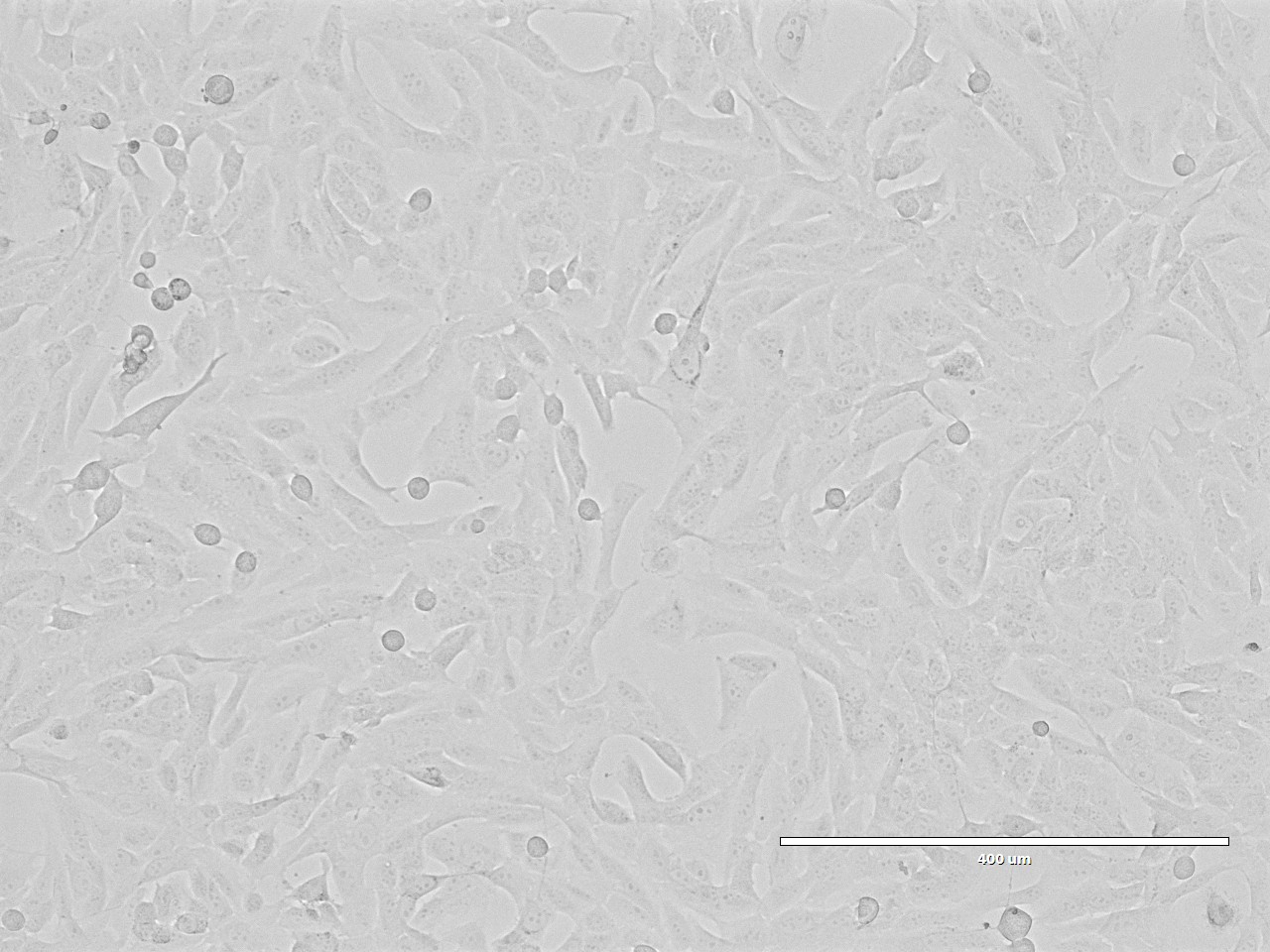当细胞密度达80%-90%,即可进行传代培养。