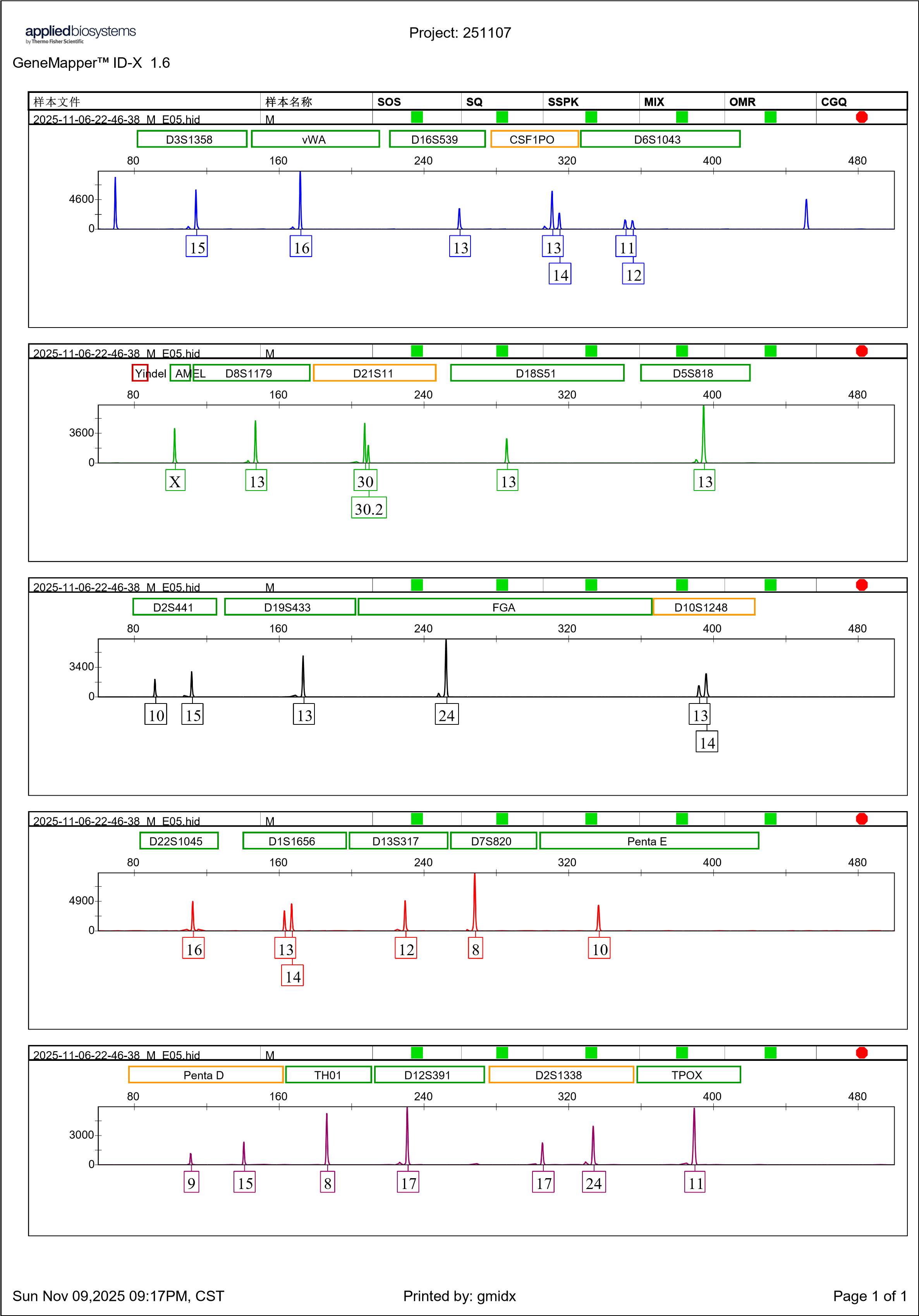STR分型图谱: