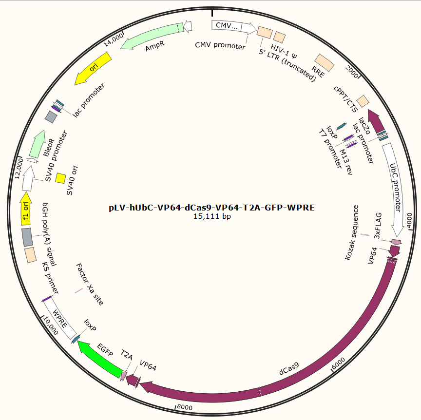 pLV-hUbC-VP64-dCas9-VP64-T2A-GFP-WPRE