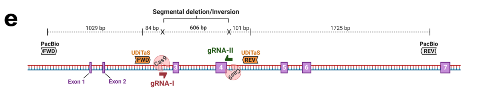 分析表明,只有当间隔物gRNA-I和gRNA-II共表达时,这两种质粒才能有效地产生预期的节段缺失。